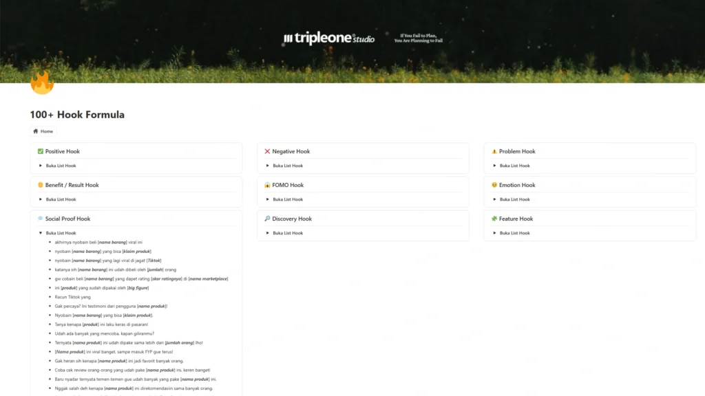 Gunakan kumpulan hook & formula copywriting untuk bikin konten kamu menarik perhatian sejak detik pertama.