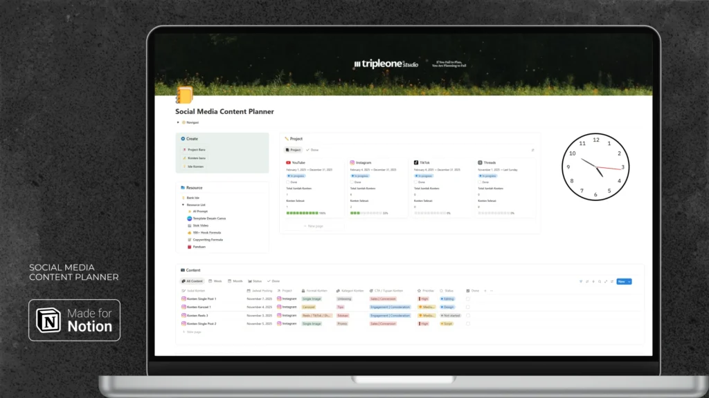 Template Notion Social Media Content Planner dirancang untuk bantu kamu: